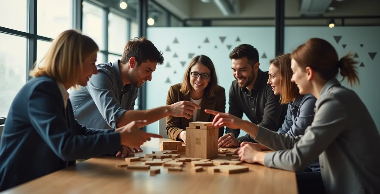 Bei tiefen Konflikten und mangelndem Vertrauen sind rein kooperative Spiele die beste Wahl. Hier gibt es nur ein gemeinsames Ziel, das nur durch die Bündelung aller Fähigkeiten erreicht werden kann. Beispiele sind das gemeinsame Lösen eines komplexen Puzzles oder das Bauen einer Konstruktion nach einem komplizierten Plan. Der Fokus liegt zu 100 % auf dem Miteinander und zwingt die Teilnehmer, ihre Differenzen für das übergeordnete Ziel zurückzustellen.